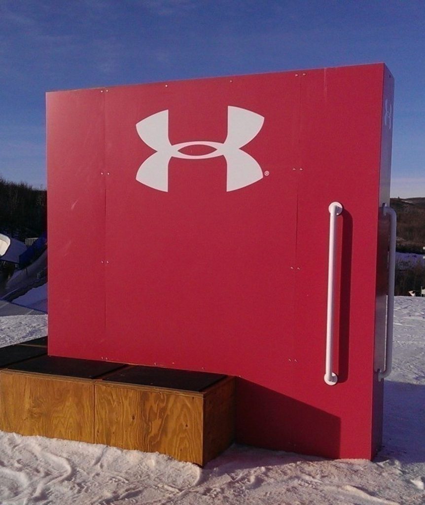 After being named the title sponsor of the Winsport Canada FIS-sanctioned superpipe this year, Under ArmourĀ® realized that this was not a small or simple feat. In their path to find a non-traditional and relevant way to bring the iconic Under Armour brand to this enormous feature, they sought aid from the branding professionals at 54blue. Understanding that Under Armourās focus and heritage is the athlete and their development, 54blue wanted to create an impactful visual structure but also something that would be useful in everyday training as well as competitions. Thus, the concept of The Under Armour Locker Room was born.